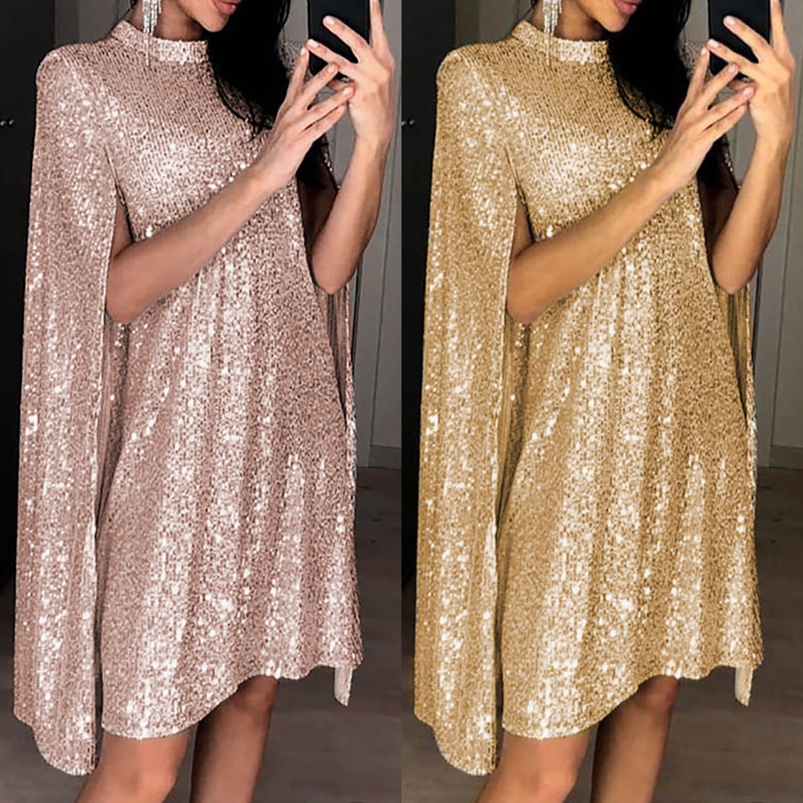 Gold Sequin Dress For Women S Cloak Long Sleeve Mini Cape Dress Party T Shirt Flowy Skater Dresses Gift For Women Walmart Com